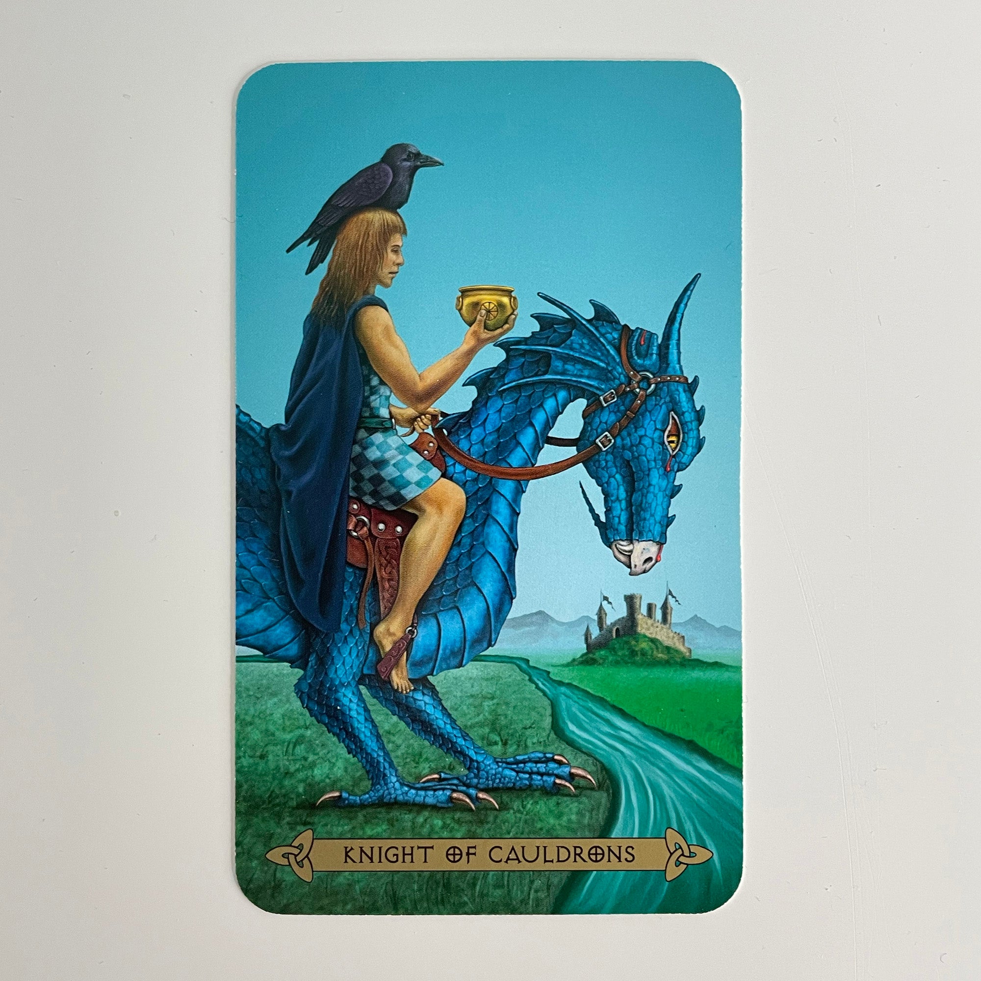 The Celtic Tarot shows the Knight of Cups riding a dragon, standing before a flowing stream. This is not a huge body of water like the sea, often pictured on the Queen and King cards, for this Knight is young and still lacking in emotional and spiritual maturity. He’s a dreamer with a big imagination, romantic and sometimes jealous. Him and his dragon gaze at the water, as if not knowing how to progress across it. Can he step out of his fantasy world of big dreams and find the maturity and practicality to manifest his desires?