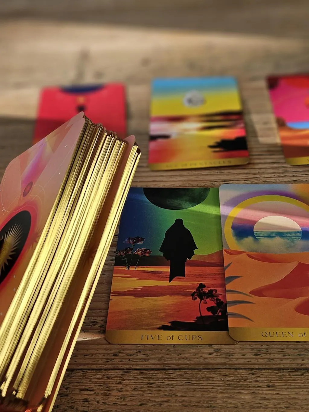 A warm and vibrant deck which mixes photography and graphic design in a surrealistic manner. These gorgeous cards have golden gilded edges and come in a beautiful box set with an extensive guidebook in English.